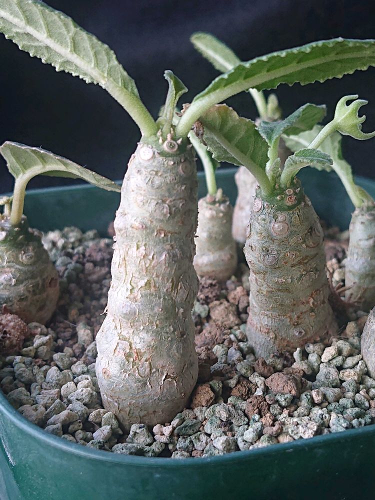 フォエチダに比べると葉が落ちた跡が残らず薄緑色でのっぺりした幹肌が特徴。