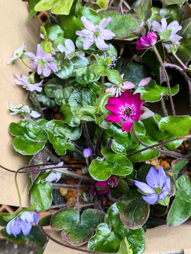 全部花の色は違っていますが、葉っぱはミスミソウです。