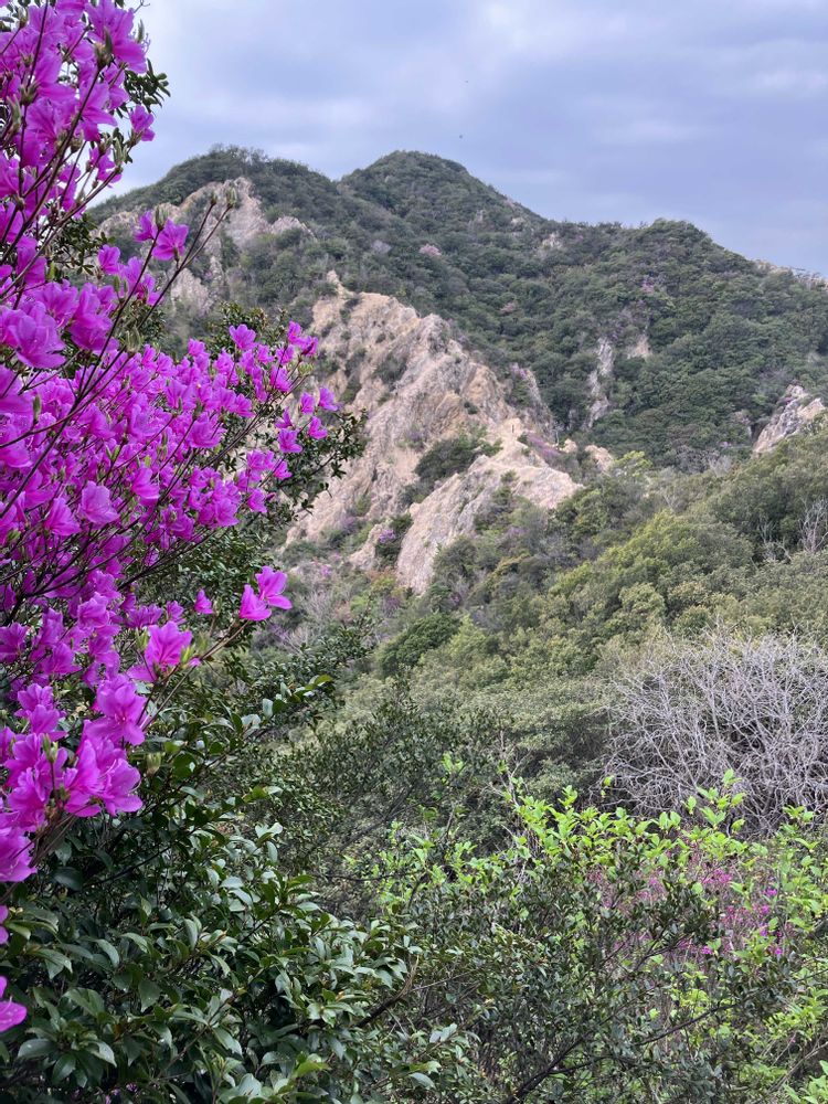 須磨アルブスの馬の背をバックにミツバツツジです。