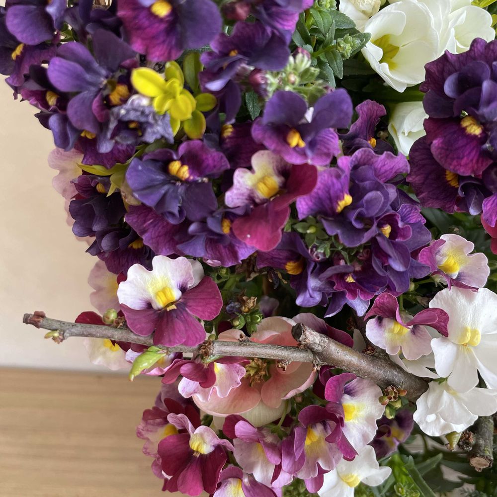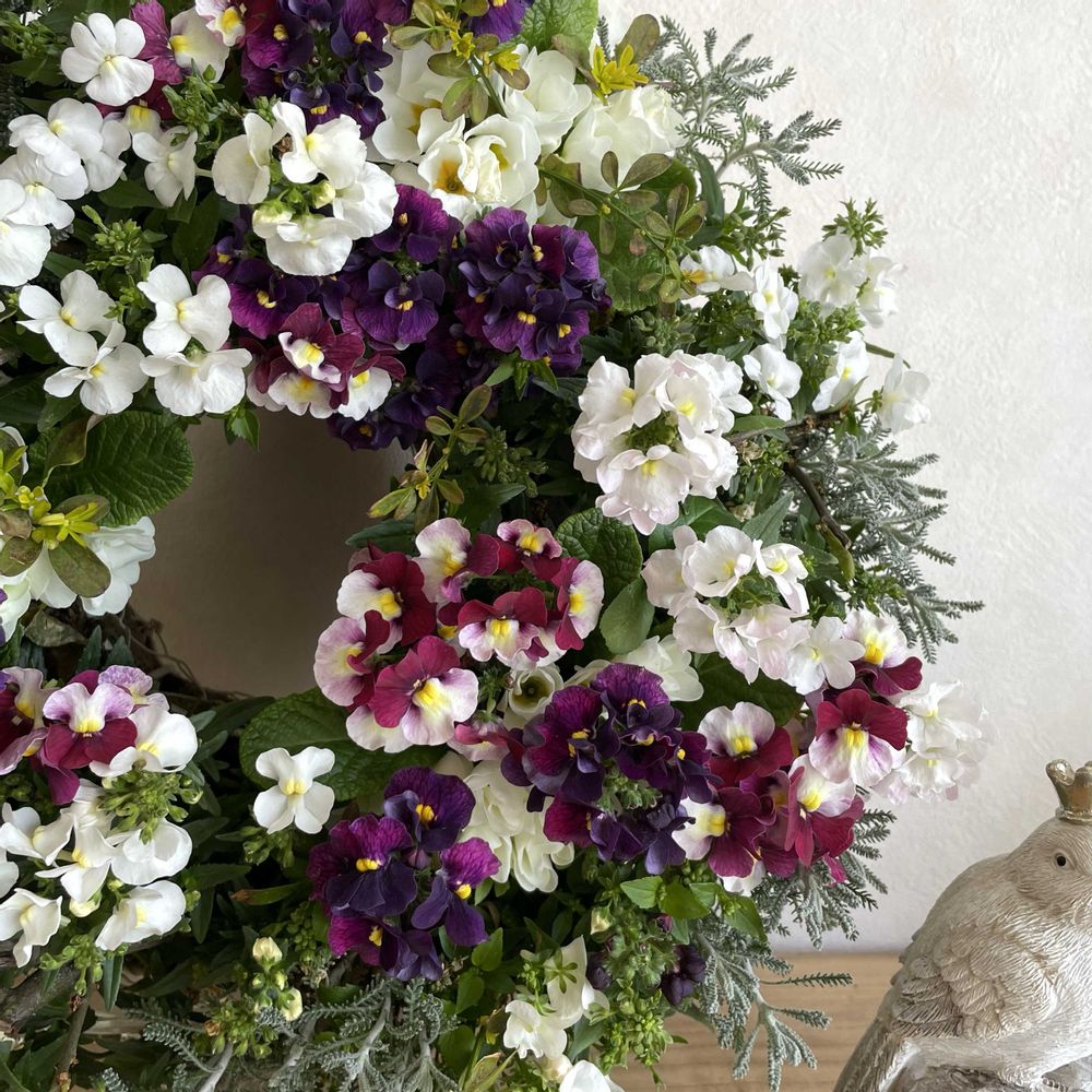 ネメシアは花期が長くて、何より花が可愛いくて、株も乱れずリースにピッタリ