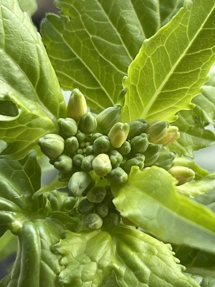 赤大根のつぼみ。赤大根のヘタを水栽培したらつぼみができました。