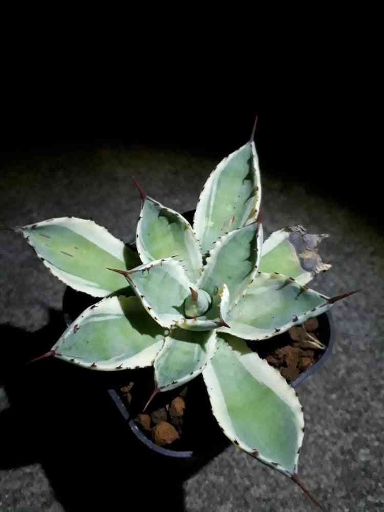6月に仕入れ、7月月に雨が熱湯になり瀕死だったのがやっと生き返りました💦💦成長点付近全域が変色してダメだと思って、根を切り水耕して復活したので土に植え替えしました👍アガベは強い❗