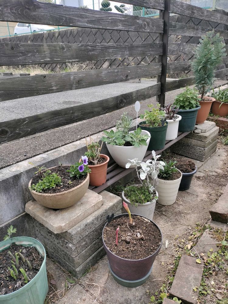 これまで和室の前で沓脱石の上にいっぱい乗せてたけど、ついにアルミの板をひいた風通しよく日当りも良い場所へ移動!