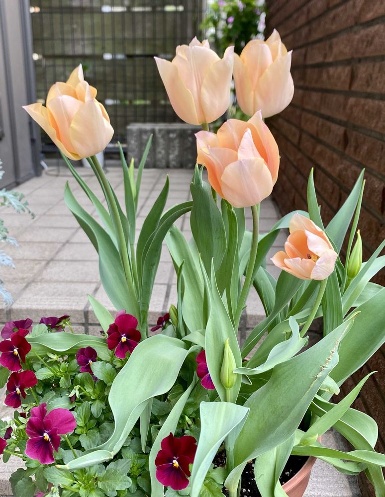 淡いアプリコットのチューリップ🌷可愛い🩷