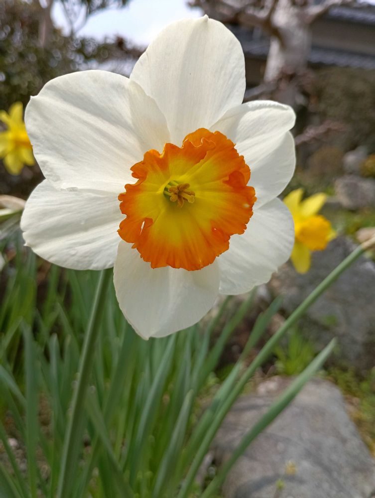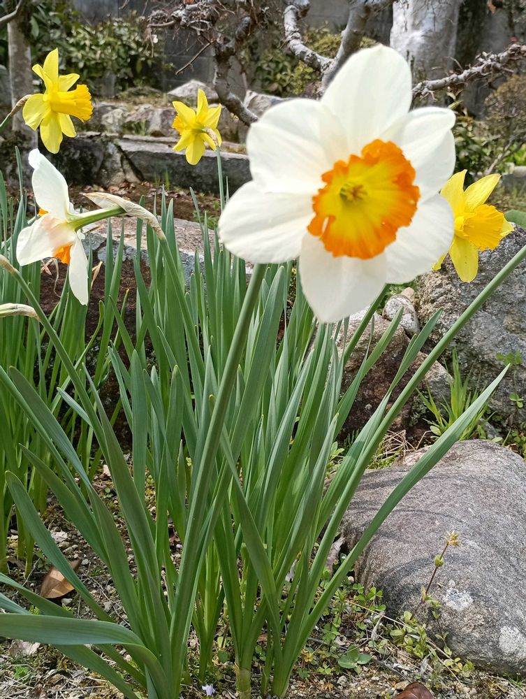 白にオレンジ入りのすいせんが 今年も咲いてくれました🥰