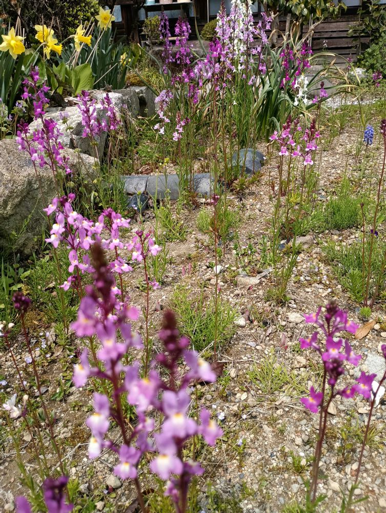 雑草まみれの中で姫金魚草 ピンクと白が可愛いです🥰