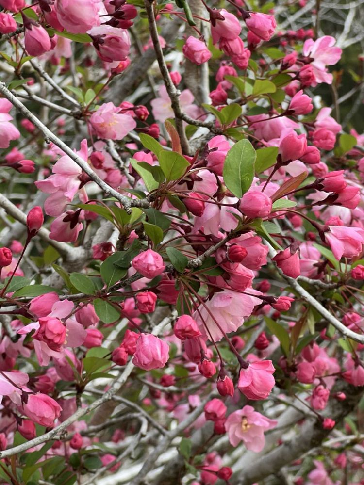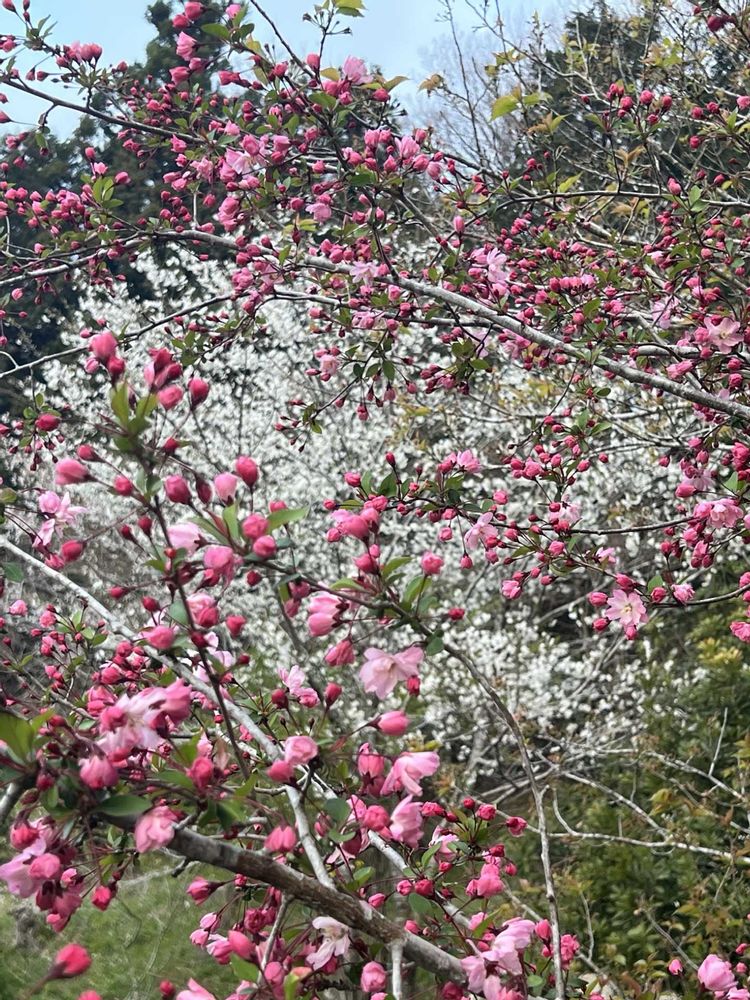 我が家の野菜畑で、花海棠が咲いてきました❗