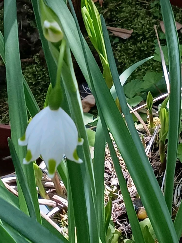 スノーフレーク、白にグリーンの縁取りが涼しげで、可憐で可愛らしく大好きなお花です〜🤍💚🤍💫