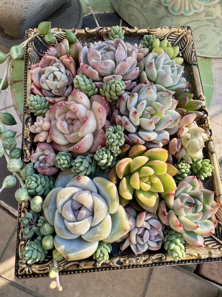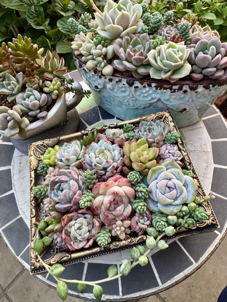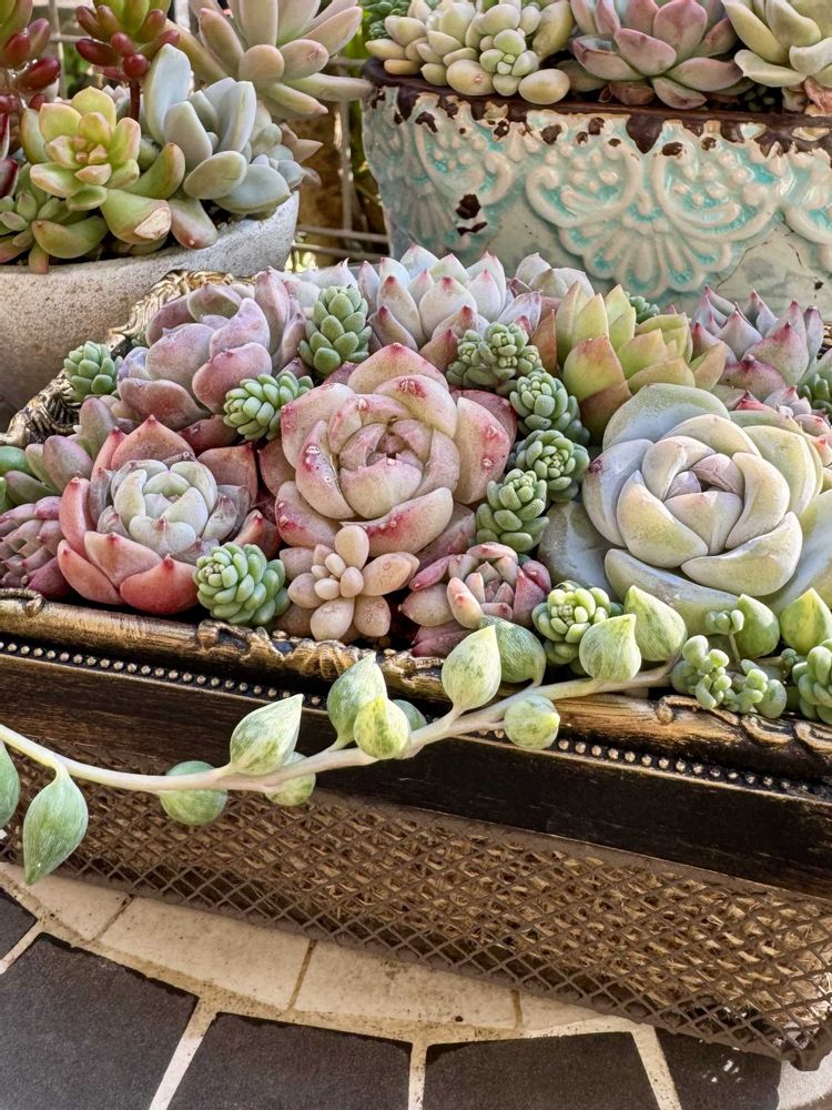 百均グッズで作ったプランターに寄せ植えをしました💚葉挿しから増えたものもちらほら🪴