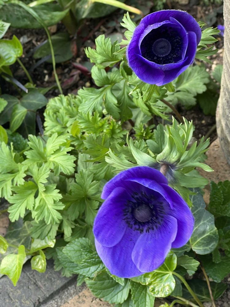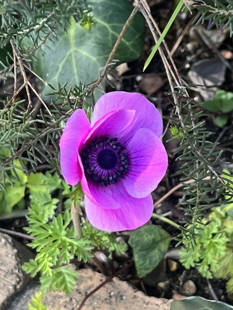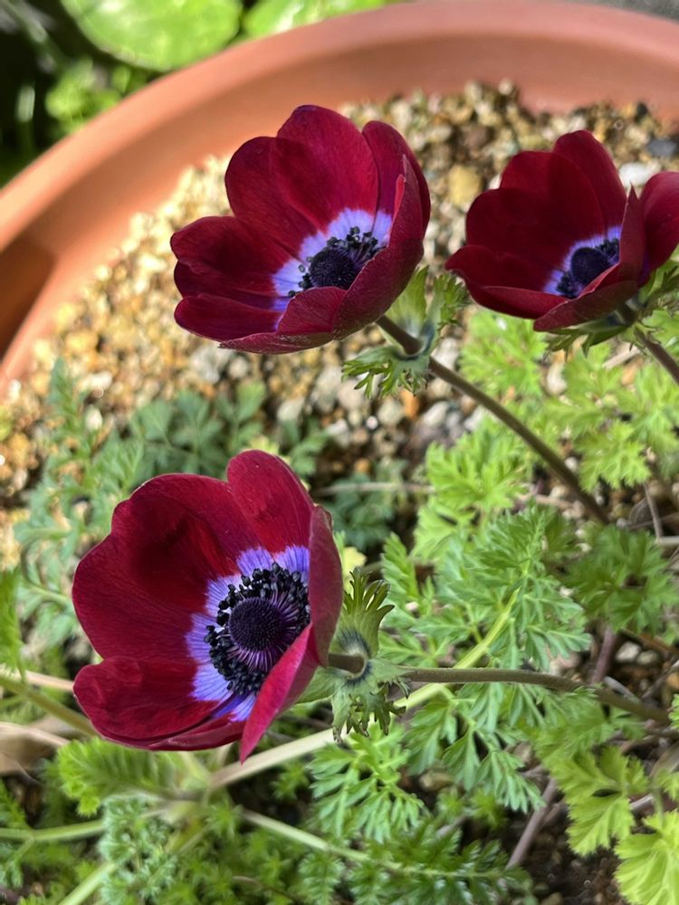 アネモネチョコレート♥️💜去年の鉢植えのままのためか🪴去年より茎が細い💦