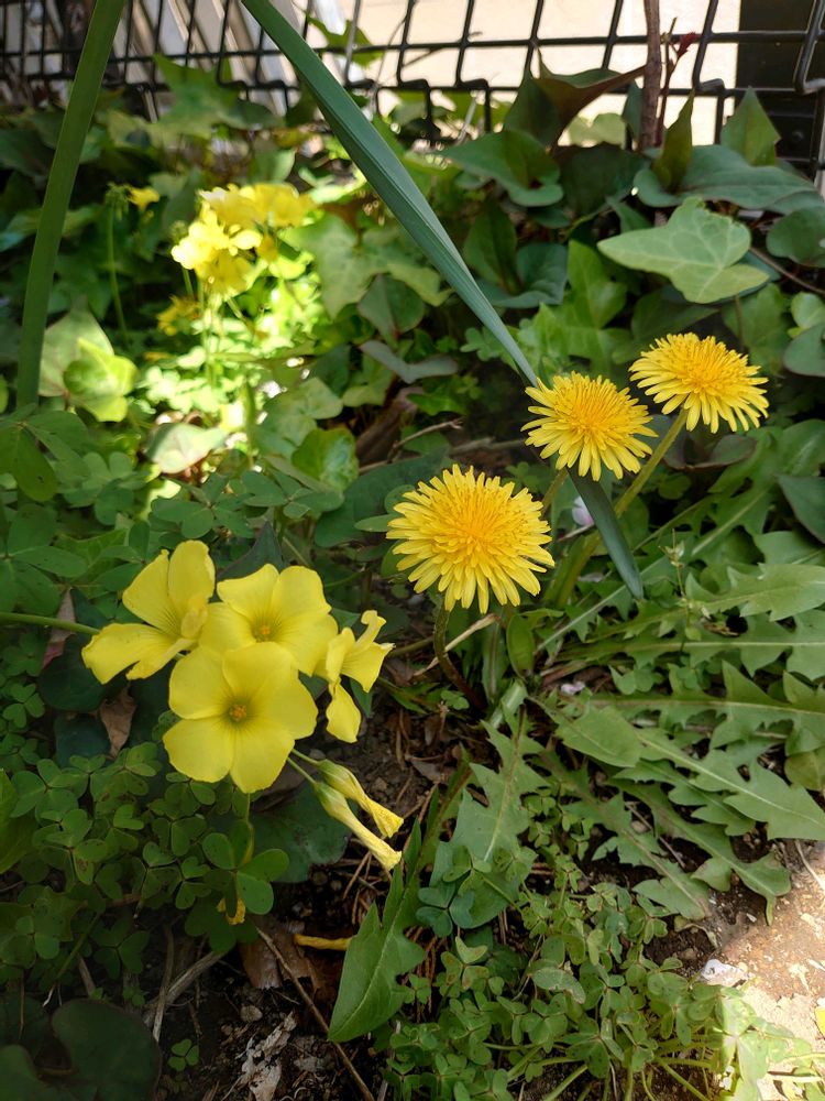 4️⃣オオキバナカタバミ💛とタンポポ🟡黄色いお花が並んでいました💛🟡😃