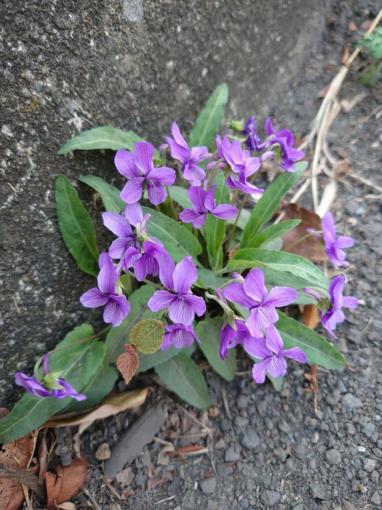 5️⃣スミレ💜アスファルトと縁石の隙間にたくましく咲いています💜😊