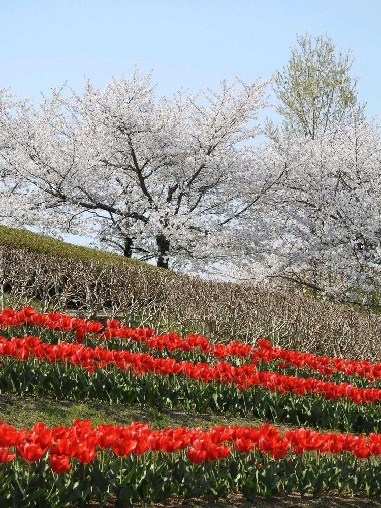 私はチューリップフェアが始まる前にと思い先週の月曜日に🐴馬見丘陵公園⛲️に行きました✨この丘はチューリップと桜のコラボが丁度良かったです🤓👌