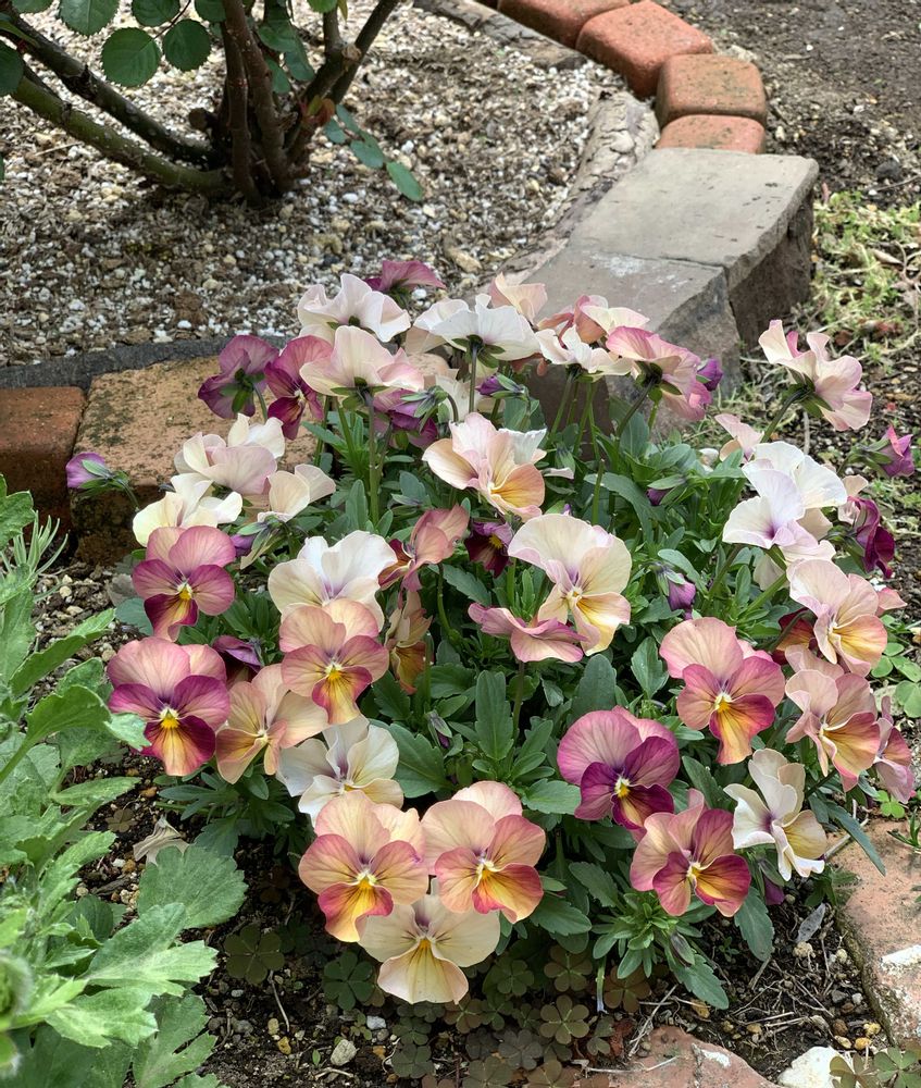 3. 冬の花壇を楽しませてくれた暖色系複色のビオラです。特別な品種名は付いていませんが豪華な雰囲気がとても気に入っています。