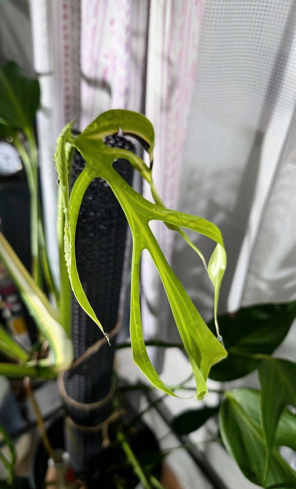 バールマルクス新芽開いてきたけど、自分の葉っぱに引っかかって破れるって言うオブリクアペルー見たいな事して若干葉っぱが傷んだんだけど、難しいね😅 湿度も大丈夫なはず何だけどやっぱり普通のモンステラより繊細なんだね🙂↕️