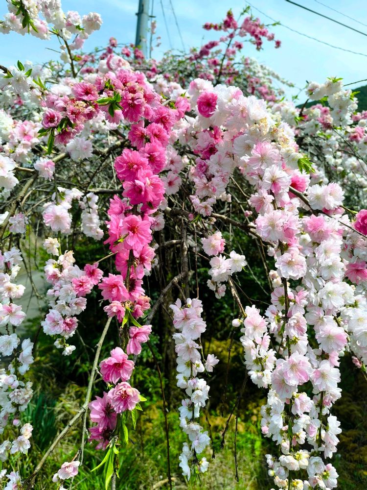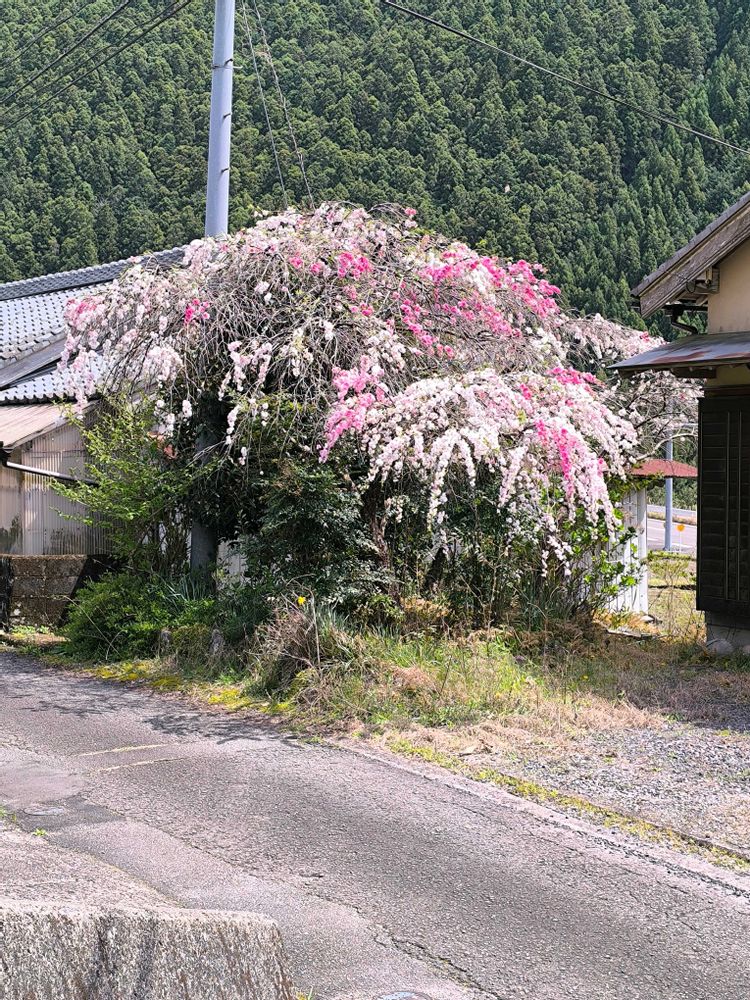 旧大塔村富里にて、流石に寒い所だから枝垂れ桜がまだ結構綺麗に咲いてる。③,④は花桃、多分源平桃じゃなかろうか?