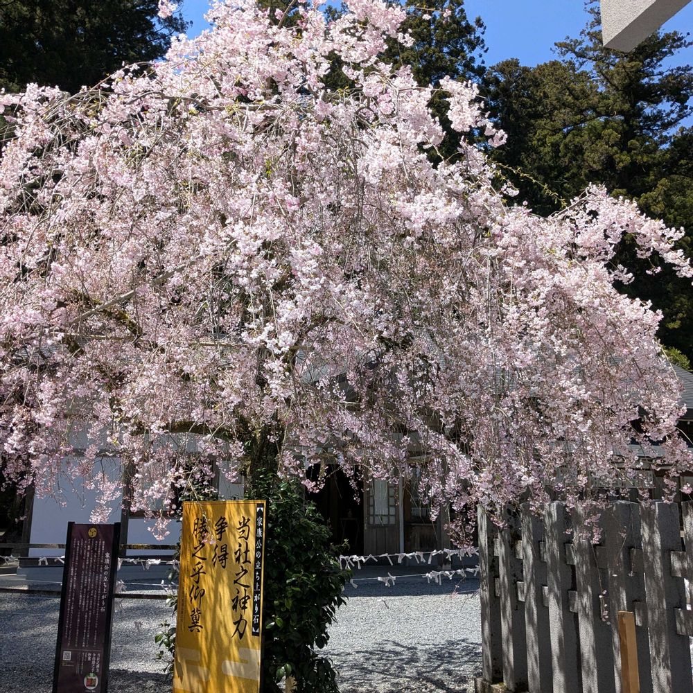 しだれ桜 小國神社の境内に、咲いていました😄ソメイヨシノは、ほとんど散っていました😄いつも、ことまち横丁で、詰め放題のお茶を、買って来ます😄