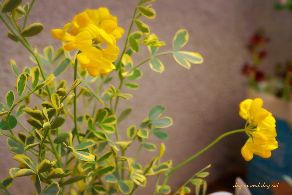 斑入りの葉っぱもマメ科らしい黄色いお花もすごく好きෆ ̖́-