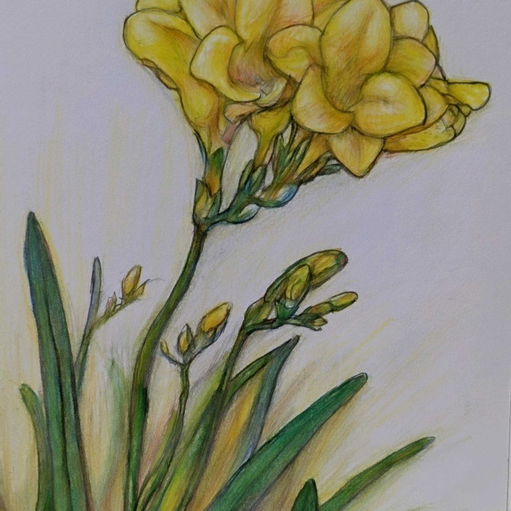 のり花さんのボケ(木瓜),フリージア 黄色,お絵描きタイムの投稿画像