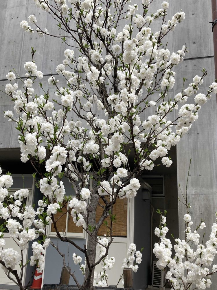 仕事にいく途中街中を歩いていた時に真っ白で素敵なお花に出逢い思わず立ち止まり見入ってしまいましたお花の名前は分からないのでgoogleで検索すると花桃と出て来ました。