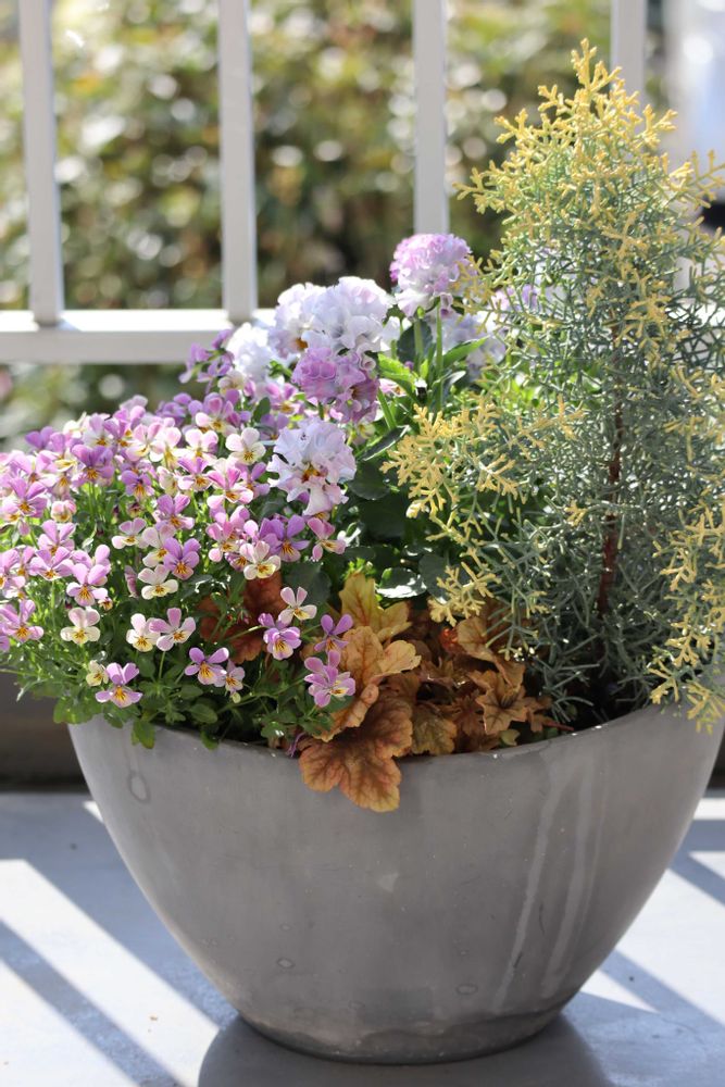 写真は松原フラワーファームさんのコライユステムロングとビオレッタの寄植。どちらも冬からずーっと咲き続けています。
