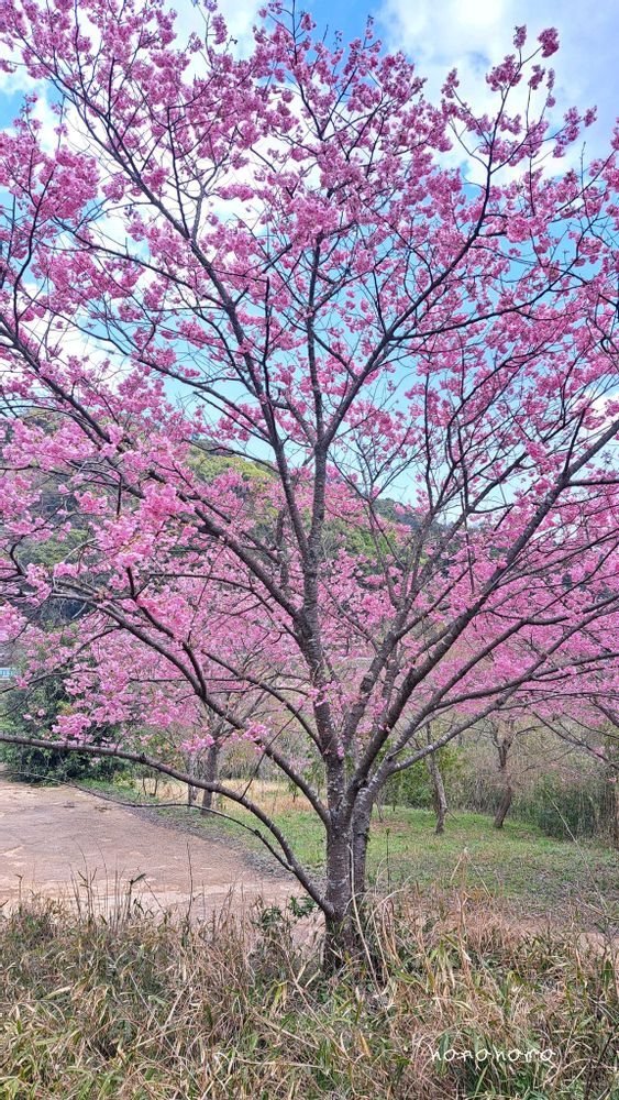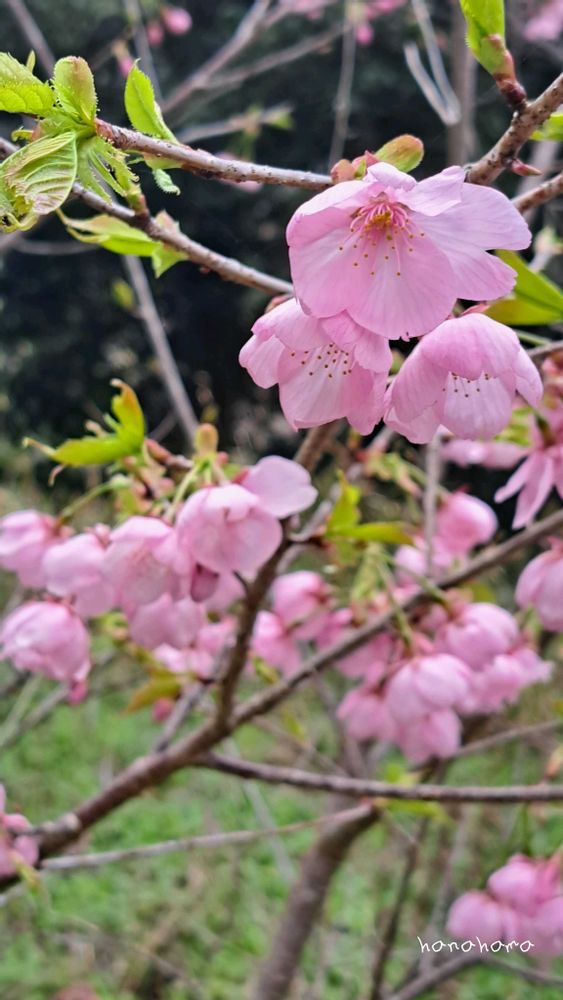 ソメイヨシノよりこの桃色の桜が多いのに驚きました。