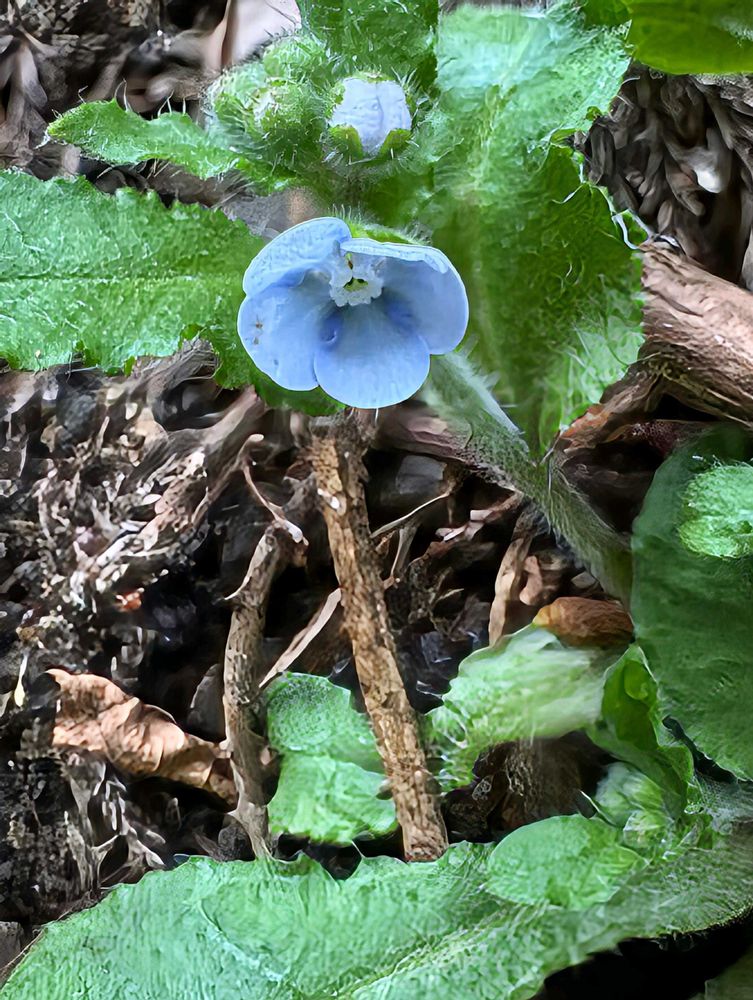 高尾山麓の沢の側に水色のヤマルリソウの花が咲き始めました🩵🌿