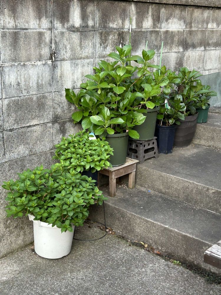 我が家の薔薇コーナーと紫陽花コーナー 薔薇の蕾も次々と・・