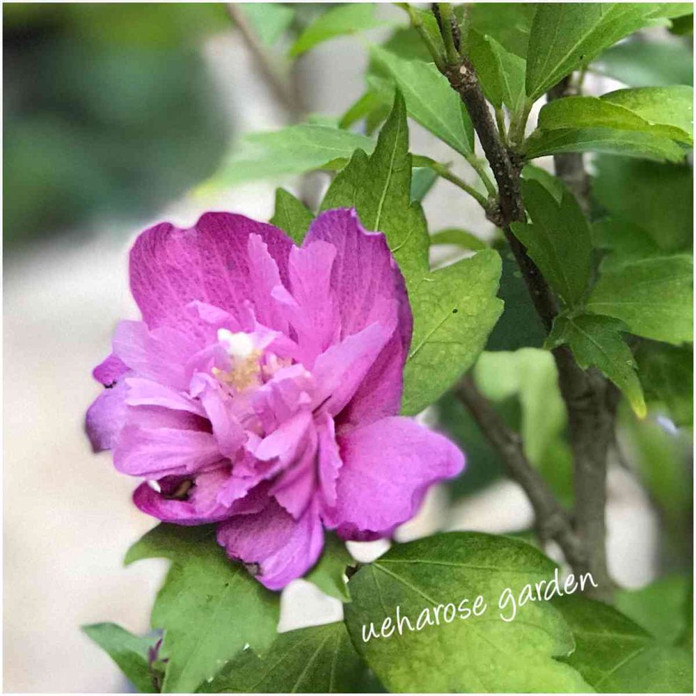 写真は八重の木槿 紫色のはずですが濃い桃色で咲いています💖