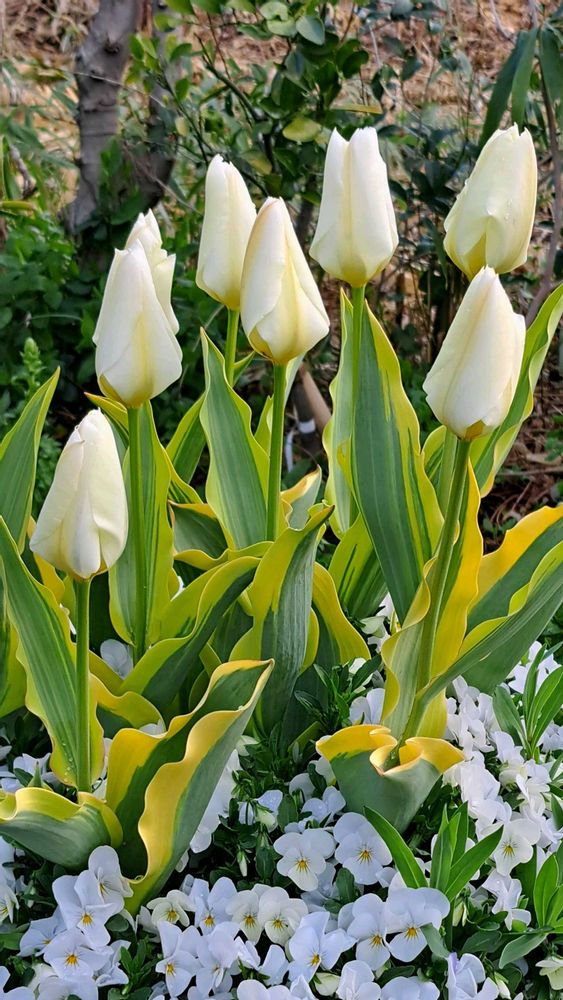 斑入りのステキなチューリップと、白いビオラ(ビビ?かな)が美しいですね〜✨✨