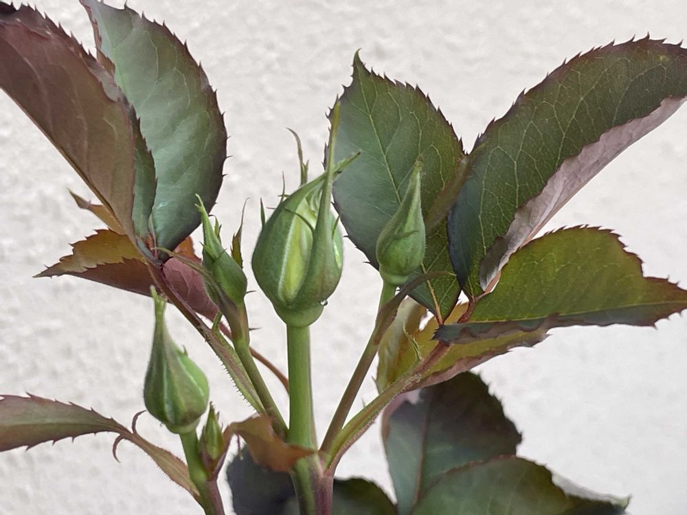 こっちは蕾も小さいよ、5月に入ってから咲くかな🌹楽しみだね😊