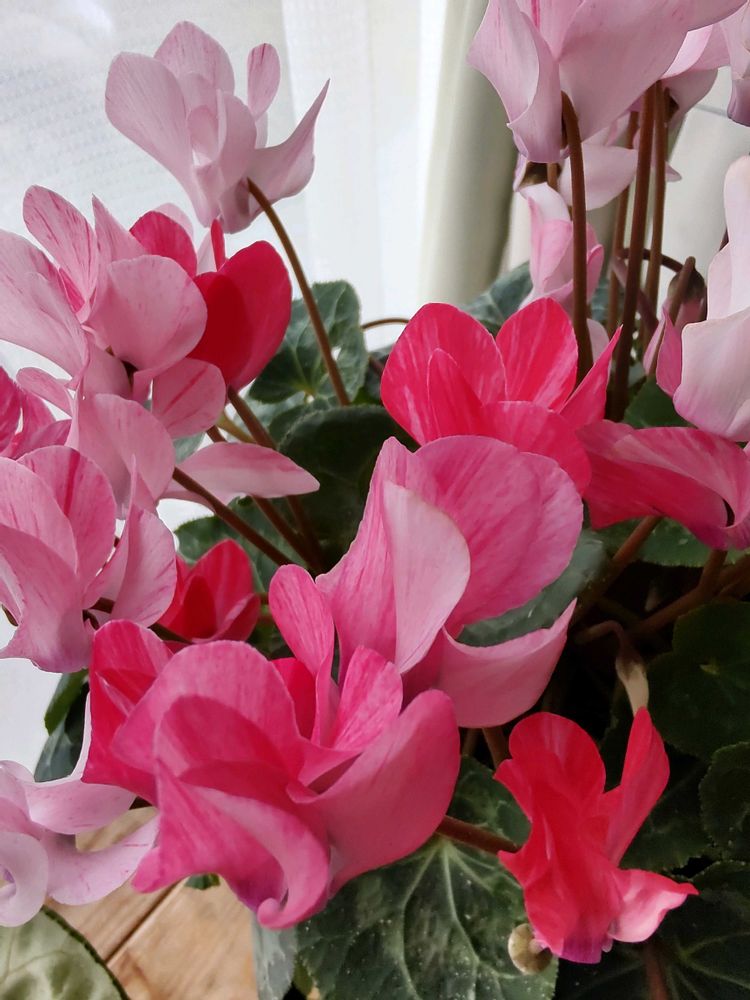 2枚目〜4枚目 このコ達は3年目シクラメンだけどみんな元気でずーっとよく咲いています💗