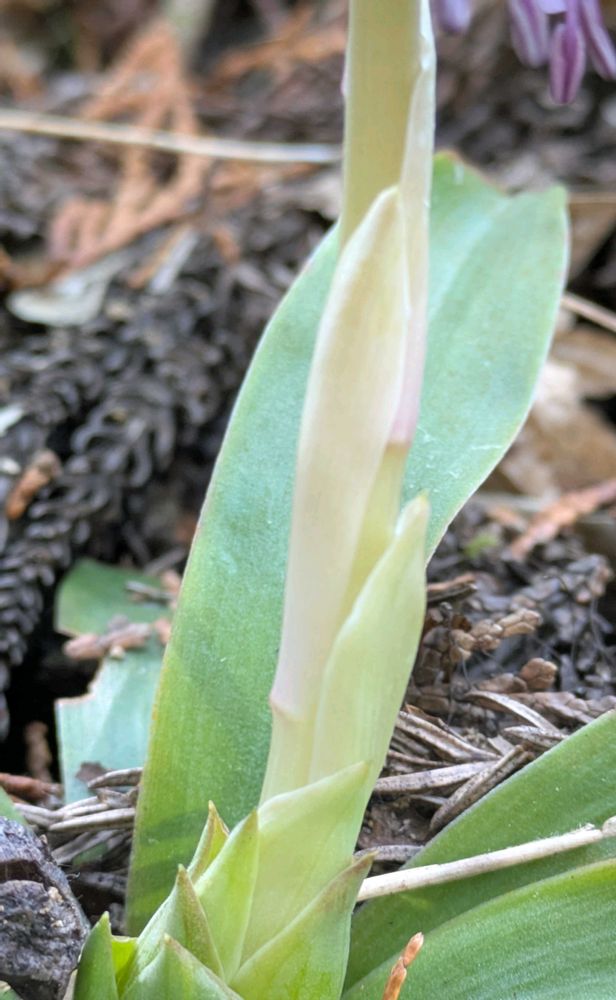 ロゼット状の混生葉が目立つけれど、茎には薄緑色の鱗片葉が何枚かついている🟩