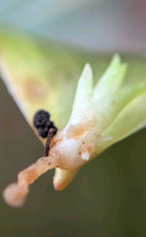 混生葉の先を持ち上げてみると時々不定芽があって、種だけではなく、のクローン芽で子株を作って増えるんだなぁ(∗ˊᵕ`∗)