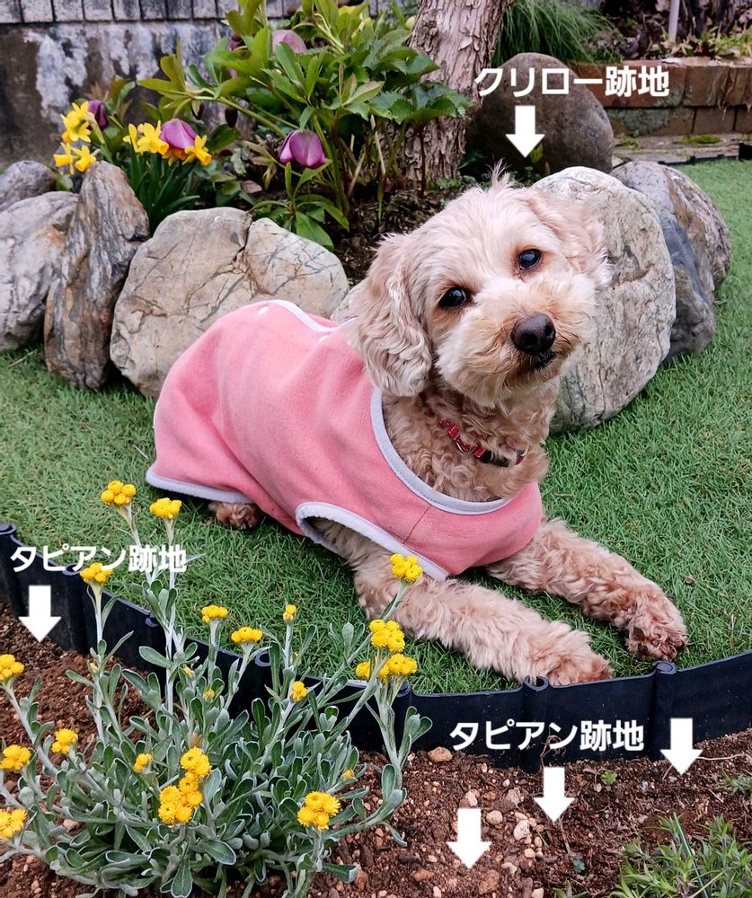 雪の下になっていたグランドカバーのタピアンが全滅して土が剥き出しになった場所にクリソセファラムを植えてみました。