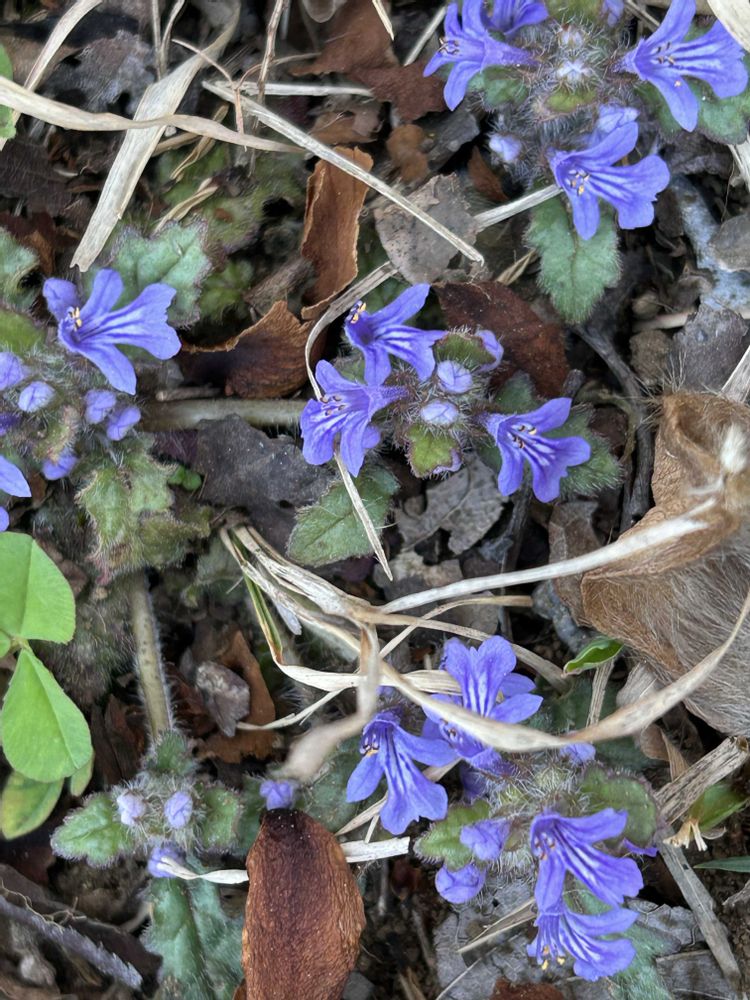 ムラサキ色が濃くツルの様なのが見えるのでサギゴケと思いましたが、トキワハゼかも?キランソウは、見つけた所に多めに咲いていましたよ💕