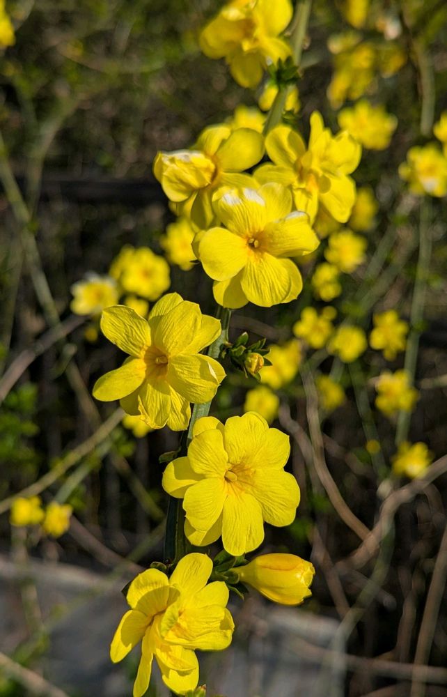 開花時期はオウバイは梅が咲く頃、ウンナンオウバイは桜の咲く頃