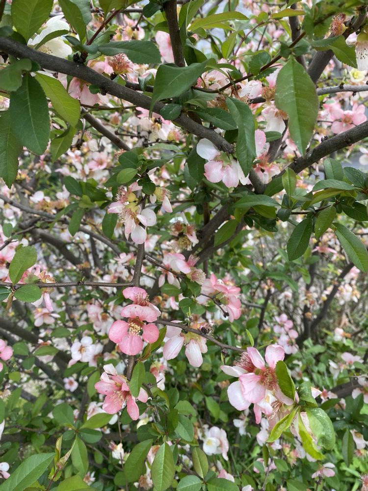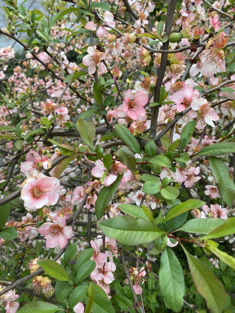 木瓜(ボケ)が優しい色合いで💗咲いていました♪