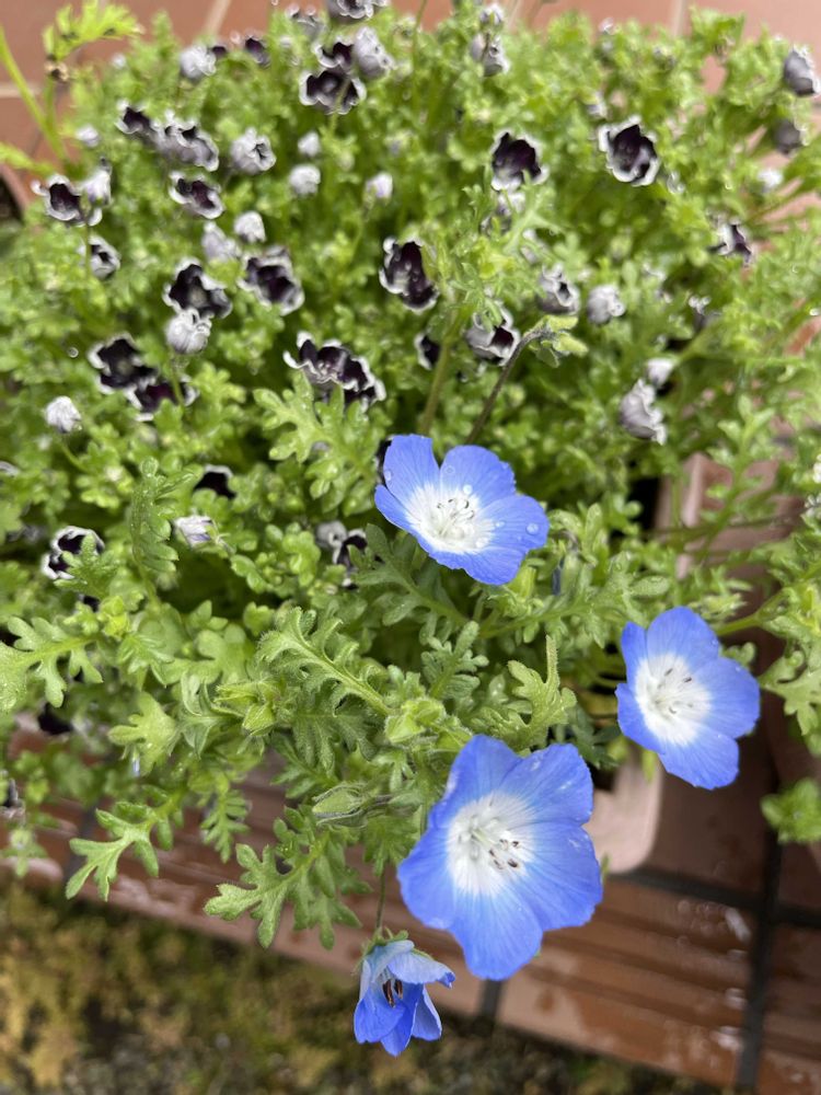 おはようございます。曇り、16.1℃、10:50ちょうどいい、昨日の花粉量89個やや多い。ネモフィラ2種(ペニーブラック、インシグニスブルー)一緒に咲いてます。ムベの花が咲きました。パンジー、ビオラ2世207日目たくさん咲いてます。つるありスナップ155日目実が出来始めました。ブロッコリー252日目そろそろ収穫かなぁ〜🥰😍😻😸😋☺️