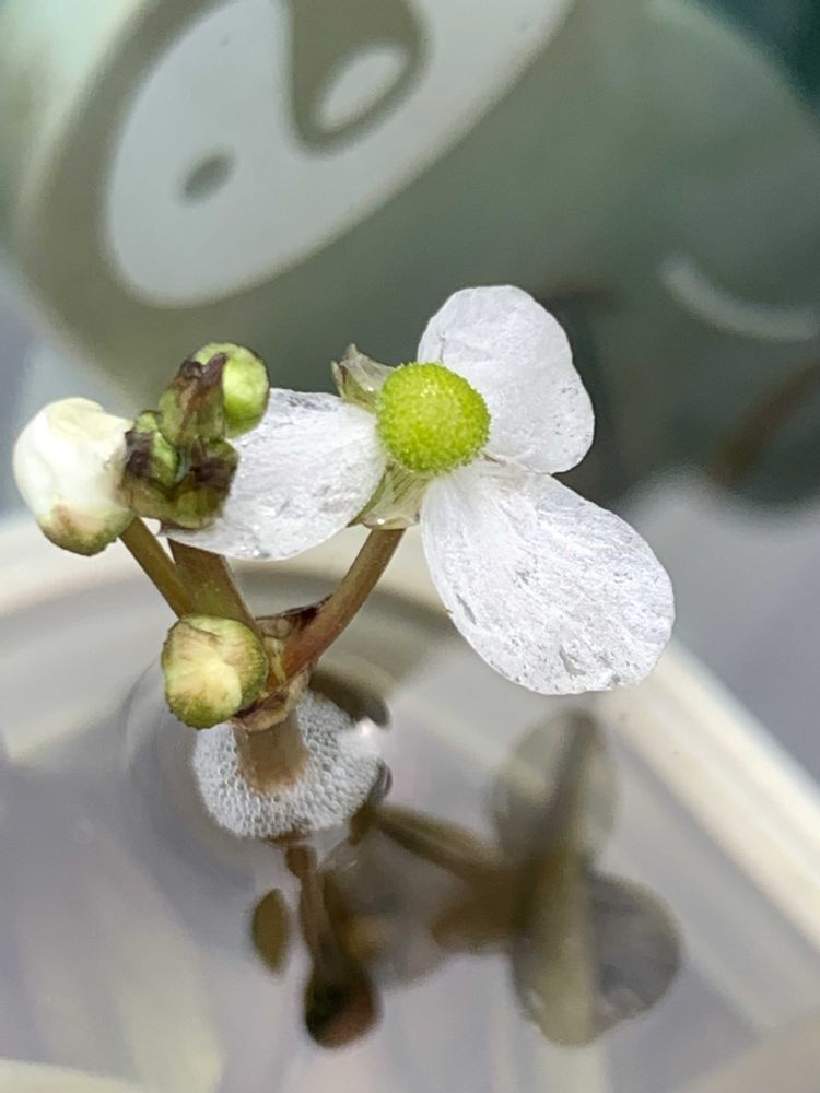 『ナガバオモダカ』がビオトープの中で1番乗りで一輪開花d(^_^o)