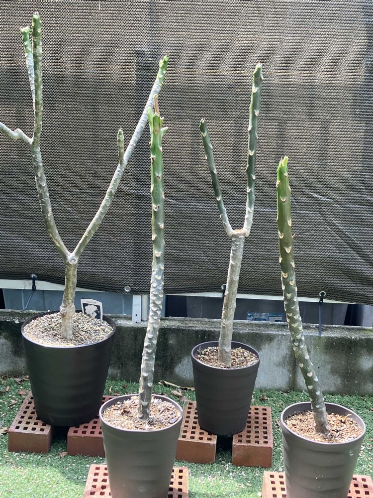 右3株が一昨年分割したプルメリア1号