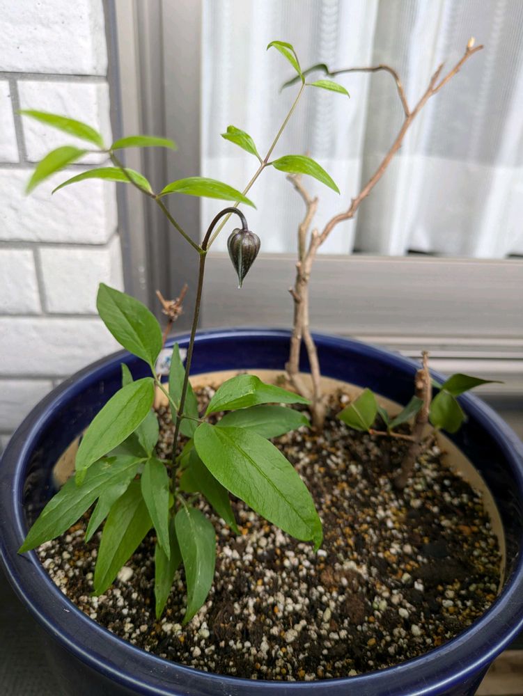 白万重と札をつけてたけど、これはもう100%ちがうわね。間違えて藤煤竹を挿し木したみたいだけど壺型でも挿し木できるってことがびっくり。背丈は20センチくらいだし、蔓は1本しか生えてないけど、親株はすごい花つきなので今後に期待です。
