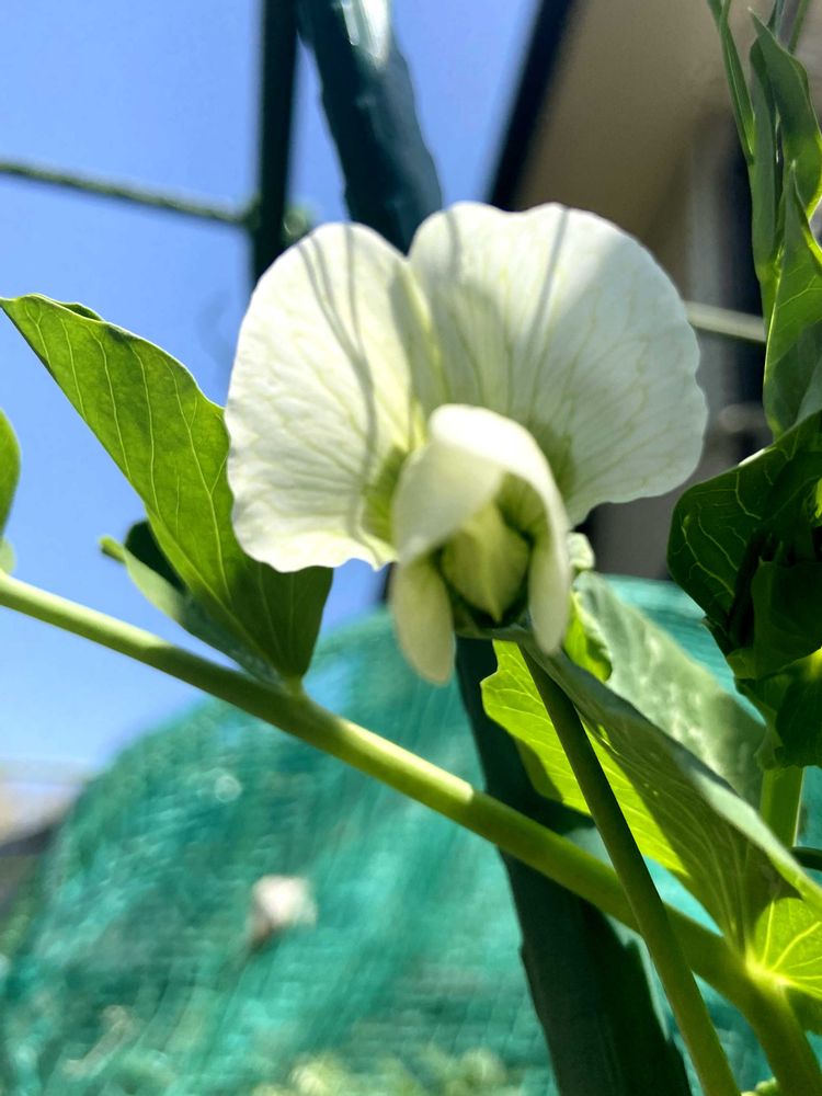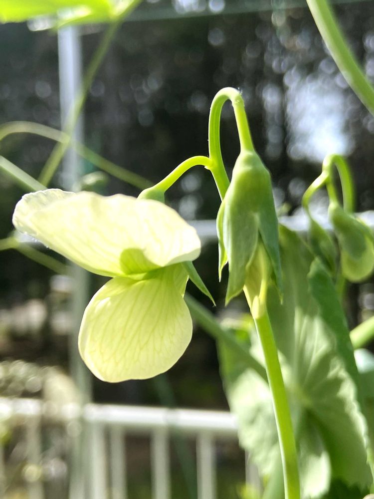 ①②③何ヶ月か前にタネを植えてたスナップエンドウさんがスクスク成長してオモロイ顔の花が登場❣️何か可愛いわ〜😃頑張って実🫛を付けてな。