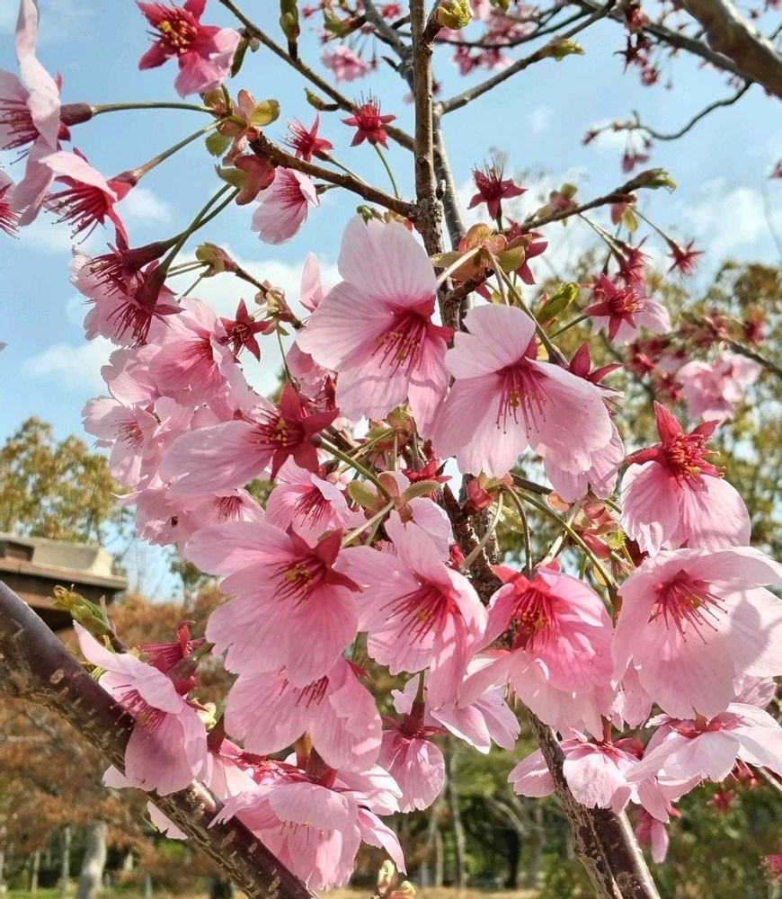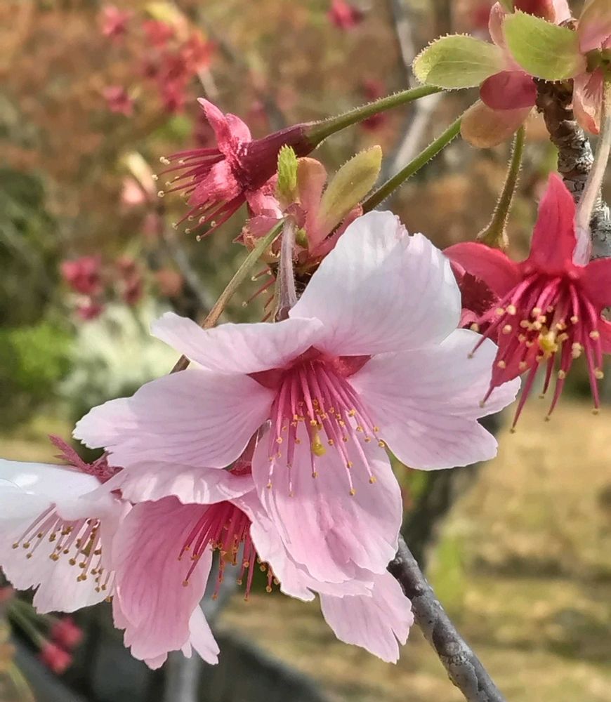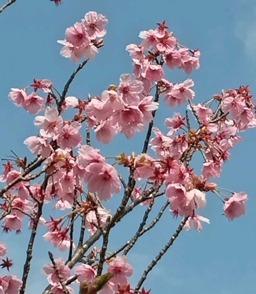 寒緋桜とマメザクラの交配で作られた品種だそうです。