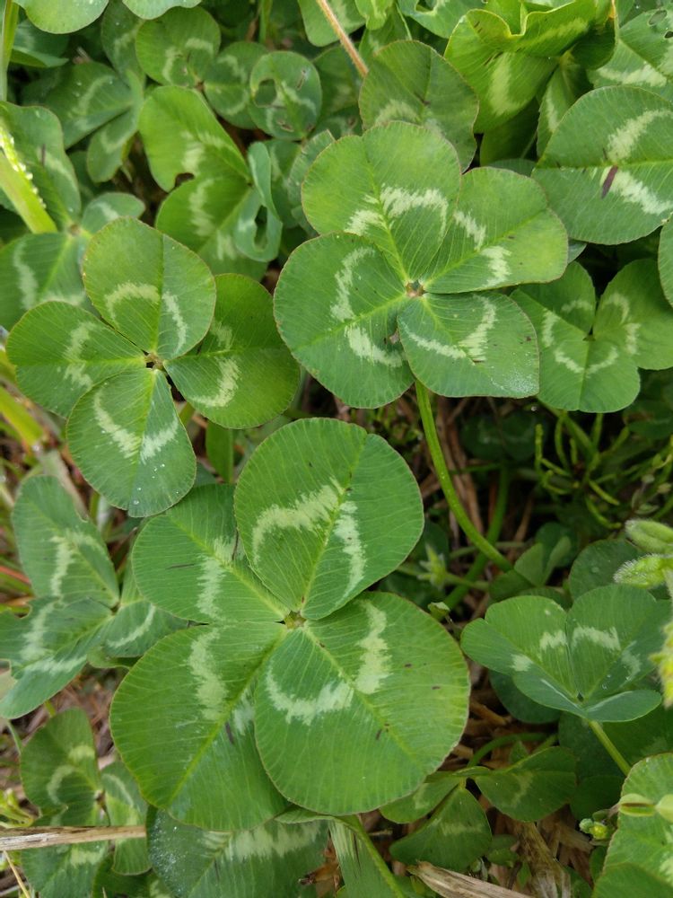 今朝の散歩で見つけた四葉のクローバー🍀*゜固まって三つもあるよ〜🍀𓂃◌𓈒𓐍