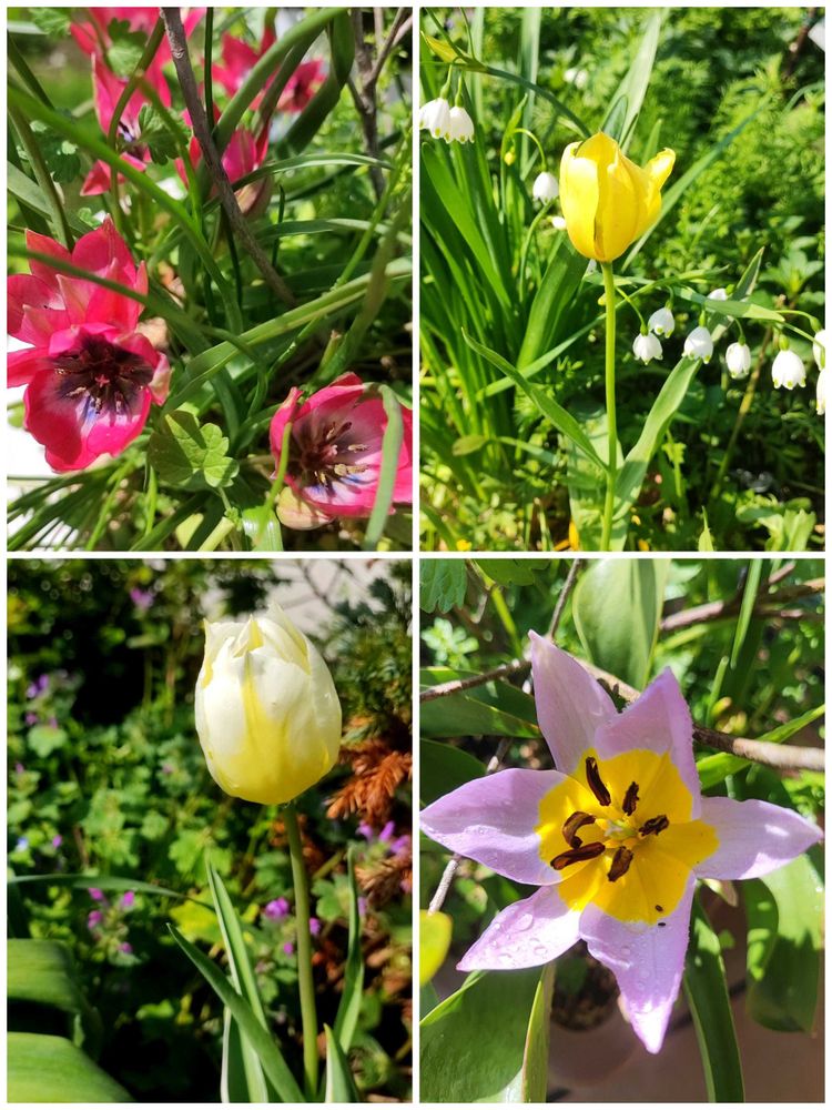 チューリップ原種系&去年から植えっぱなしの子達が一気に開花しました。原種系の子達は、背の低いタイプを平戸つつじの周りに寄せ植えとして球根を仕込んでいたのですが、よく咲いてくれました。