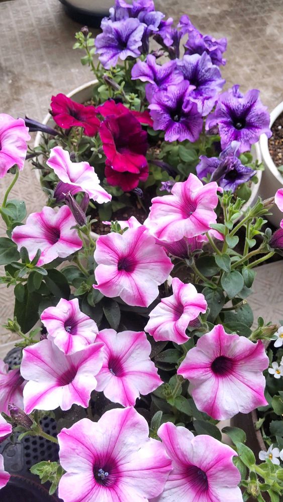 今日は ベランダ 暑いくらい ホームセンターで 迷って選んだ ペチュニア 好きな 鉢に植え替え💕🥵