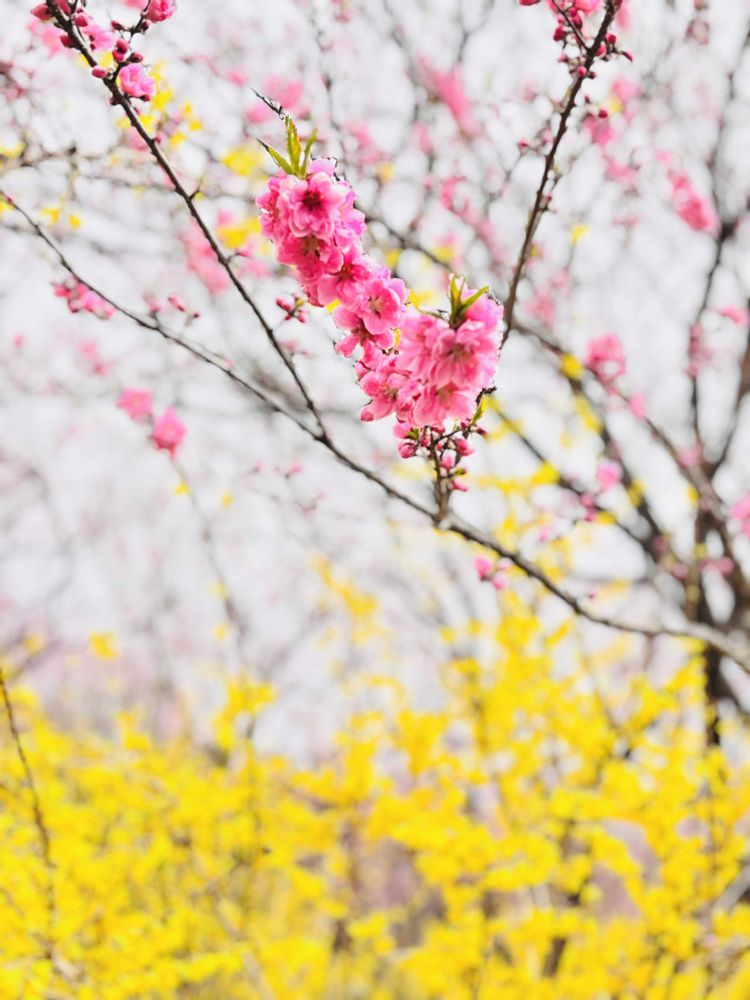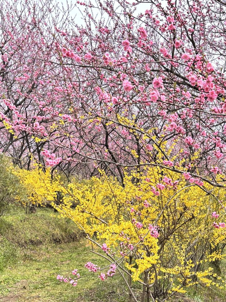 中之条ガーデン、花桃の丘、花桃は5分咲きでした。満開だと幻想的な景色なのでしょうと想像しました。群馬県は寒いのですね、こちらは桜も花桃も満開は過ぎています。