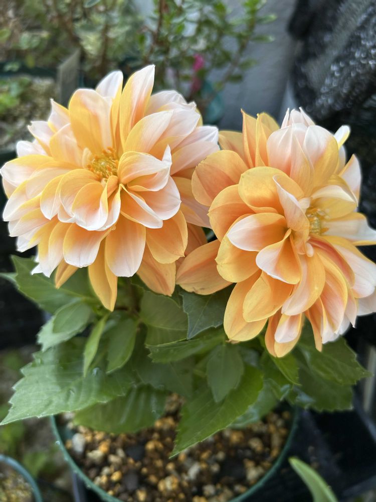 ①さっき生協から届いたばかりのダリア、キャラメルです🌼