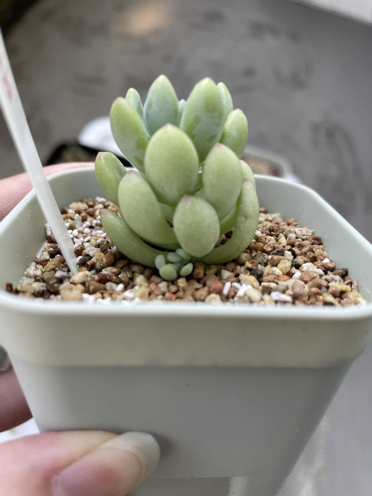 2024年3月22日に交配 2024年7月12日に結実した種を採取 2024年8月14日に種まき 2024年9月に発芽 その後、植え替えをして現在2025年7月に至る 今後の成長はアプリで記録 花が咲くまで継続